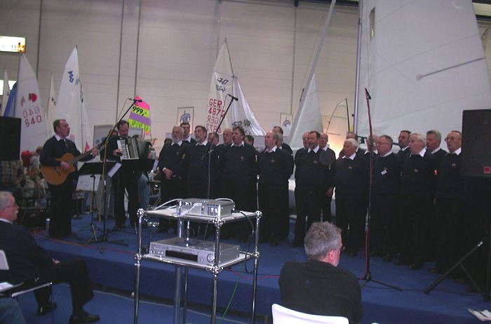 Der Shanty-Chor des SKBUE singt zum Segler-Treff im Segelzentrum Halle 17