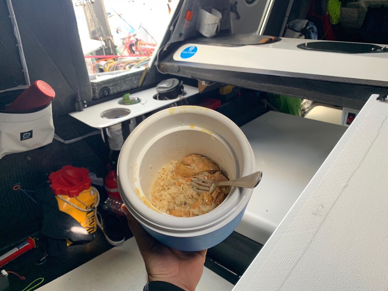 Rund 1.600 von insgesamt 3.542 Seemeilen vor dem Ziel hatten sich Bedingungen in den typischen nordöstlichen Passatwinden für das Spitzenquintett im Vergleich zur Vorwoche radikal verbessert. Tagsüber in Shorts und T-Shirt statt im Überlebensanzug, so die persönliche Garderobe. Und die Yachten trugen je nach Windeinfallswinkel von hinten Gennaker oder Spinnaker: Champagnersegeln – bei isotonischen Getränken und Astronautennahrung.