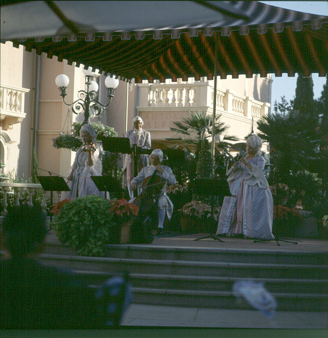 Ein Rokkoko-Orchester spielt zwischen den venezianischen Bauwerken