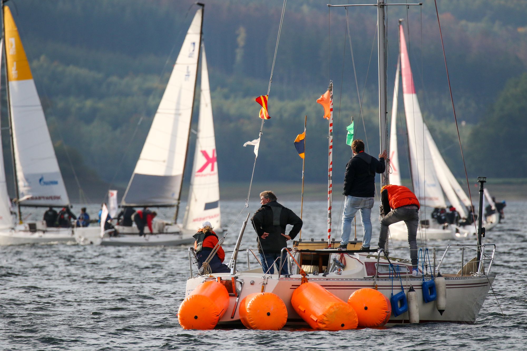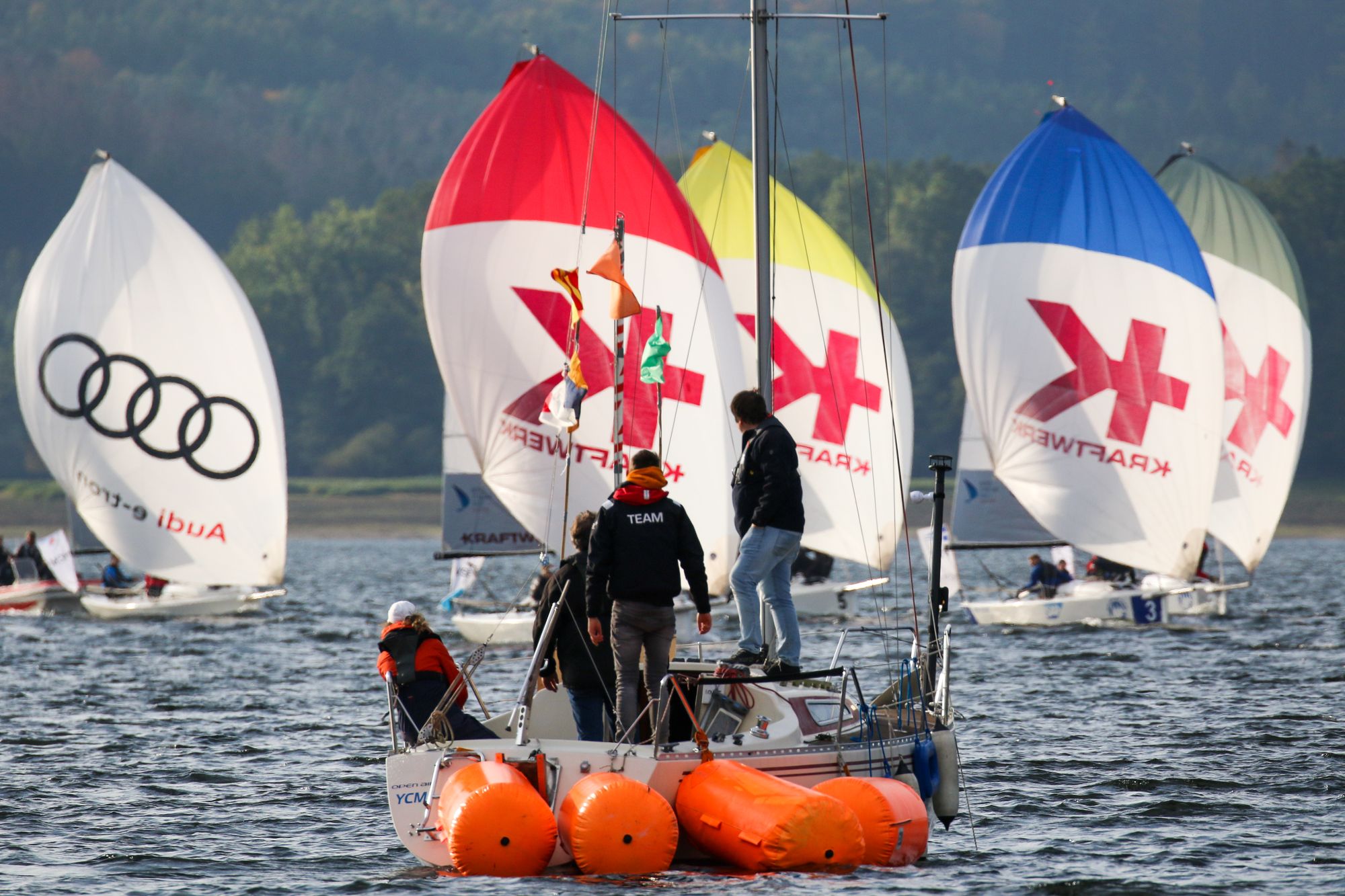 Startschiff des Yachtclub Möhnesee beim Finale 2019 der Deutschen Junioren Segel Liga auf dem Möhnesee
