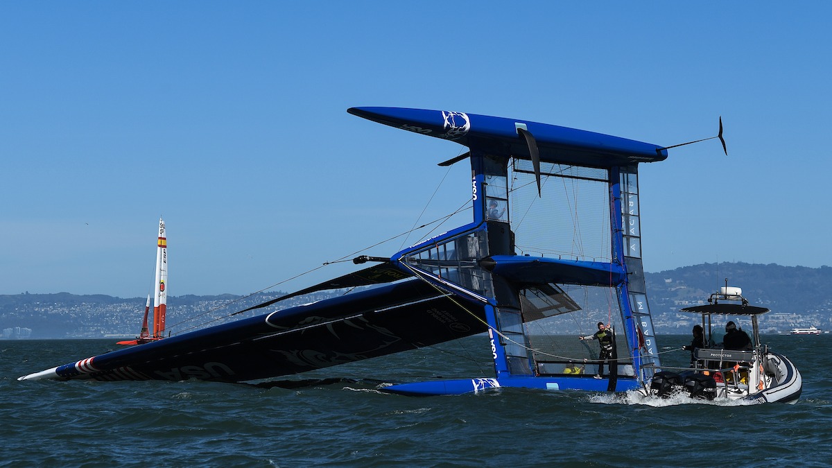 Das USA SailGP Team kenterte heute in der Bucht von San Francisco während einer Trainingseinheit für das SailGP-Saisonfinale an diesem Wochenende, den bevorstehenden Mubadala United Sail Grand Prix, vom 26. bis 27. März.